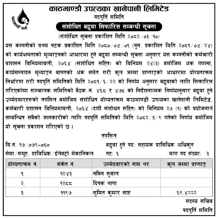 рдХрд╛рд░реНрдп рдХреНрд╖рдорддрд╛рдХреЛ рдЖрдзрд╛рд░рдорд╛ рдмрдвреБрд╡рд╛рдХреЛ рд▓рд╛рдЧрд┐ рдкреНрд░рдХрд╛рд╢рд┐рдд рд╕реВрдЪрдирд╛ тАУ реирежреореж-режрей-рейрез