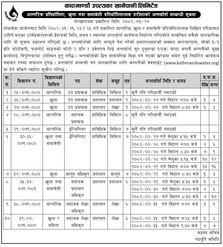 आन्तरिक प्रतियोगिता, खुला तथा समावेसी प्रतियोगितात्मक परिक्षाको अन्तर्वार्ता सम्बन्धी सूचना – पदपूर्ति समिति -२०८२-०१-२७
